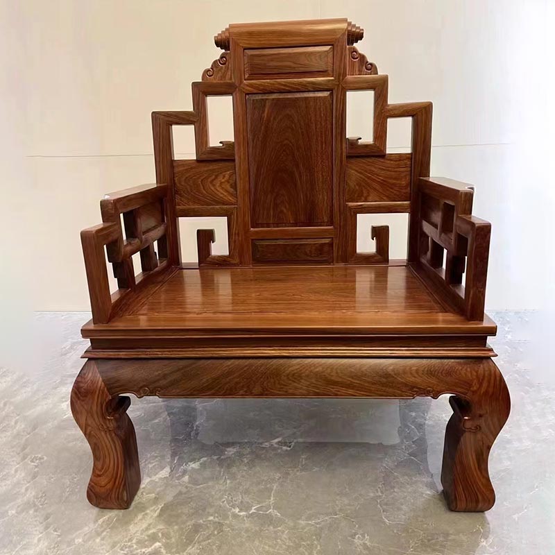Китайский классический расширенный офисный стул имеет великолепную форму и изысканный дизайн. Он подобен трону, излучающему величественную и благородную атмосферу. Сидя на стуле, вы можете ощутить ни с чем не сравнимое чувство уважения. Это не просто предмет мебели, но и символ статуса. Он предоставляет вам комфортное место для отдыха, а также показывает ваш вкус и статус. Выбирайте этот стул, выбирайте превосходное качество фабрики красного дерева Чуаньтяньцзян, и пусть ваша жизнь будет полна достоинства и роскоши. Естественная текстура красного сандалового дерева с крупными плодами подобна струящимся облакам и воде, а цвет теплый и мягкий. Величественная форма, высокая спинка и широкие подлокотники словно передают величие короля.