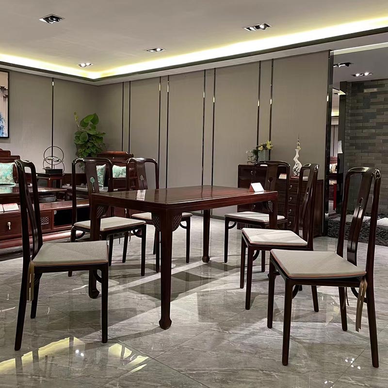 Приглашаем вас прийти на нашу фабрику, чтобы купить новейший и высококачественный новый китайский прямоугольный обеденный стол. Тщательно изготовлено на фабрике красного дерева Чуаньтяньцзян. Прямоугольный обеденный стол изготовлен из черного дерева, а естественная текстура и цвет черного дерева придают обеденному столу элегантную текстуру. Прямоугольный обеденный стол имеет врезную и шипованную конструкцию. Использование врезной и шиповой конструкции является прекрасным проявлением традиционного мастерства, делая прямоугольную конструкцию обеденного стола прочной, стабильной и долговечной.